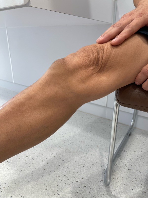 - ก้อนบวมหน้าเข่า กดเจ็บ